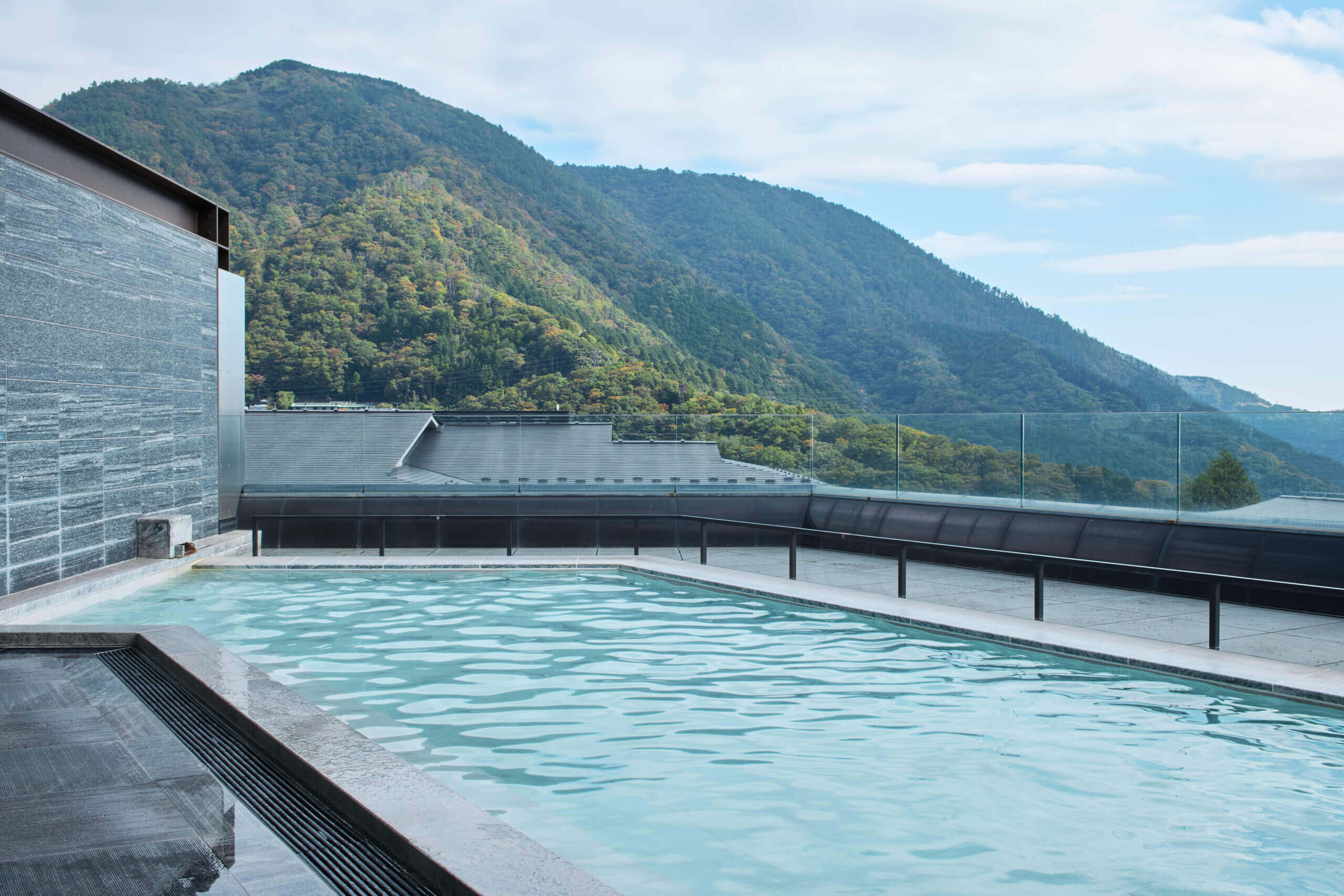 堪能する眺望と上質な温泉強羅屈指の広さを誇る展望露天風呂では大自然の造形を体感しながら開放感溢れる湯浴みをお楽しみいただけます。