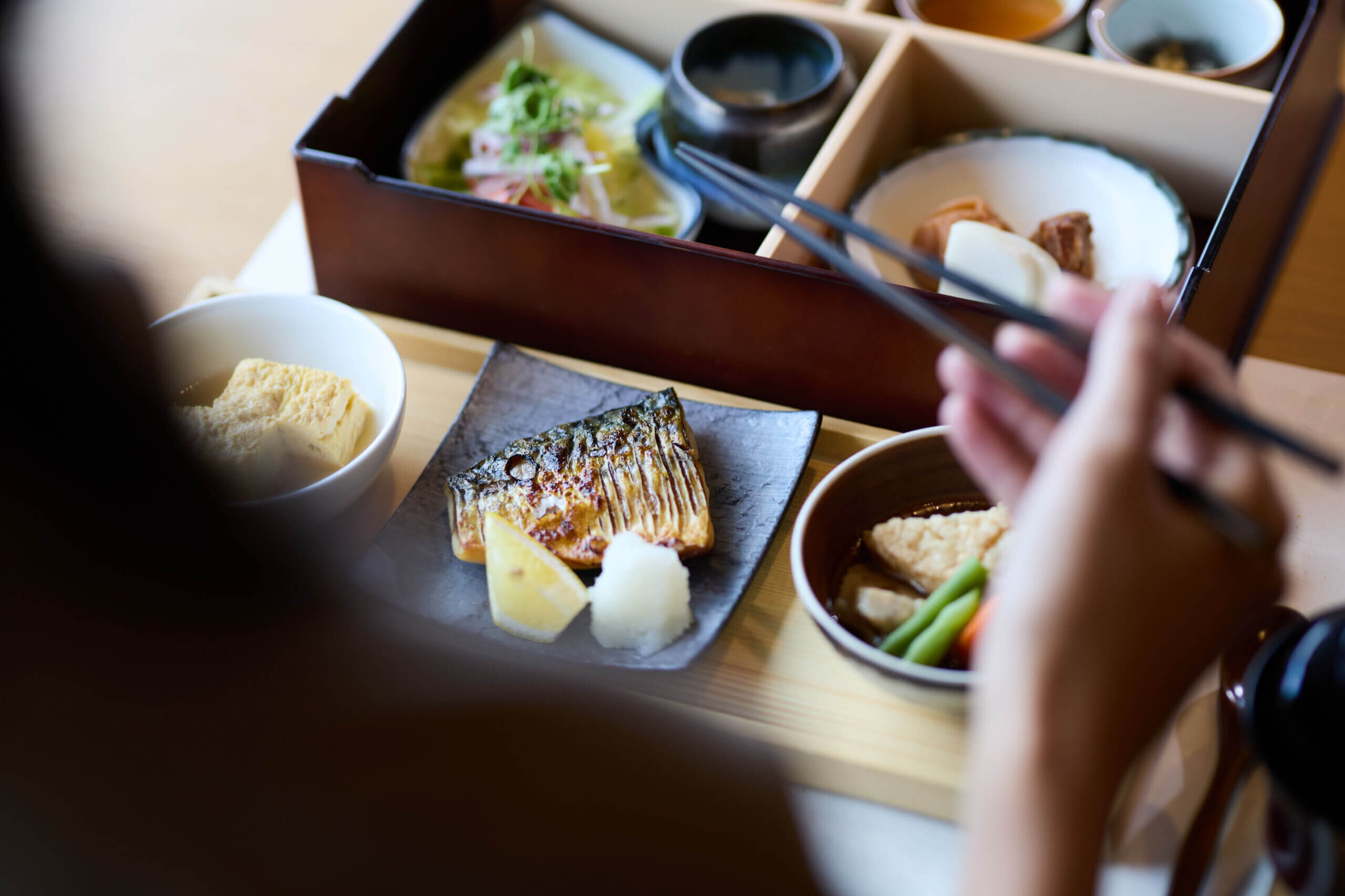 ふっくらと炊き上げた白米が主役。季節ごとに銘柄を厳選したお米は噛むほどに甘みを増し、お米本来のおいしさをあますところなく味わえます。近隣の産地から選りすぐった彩り豊かなおかずをおともに、心身に沁み渡る実りのある和朝食を。
